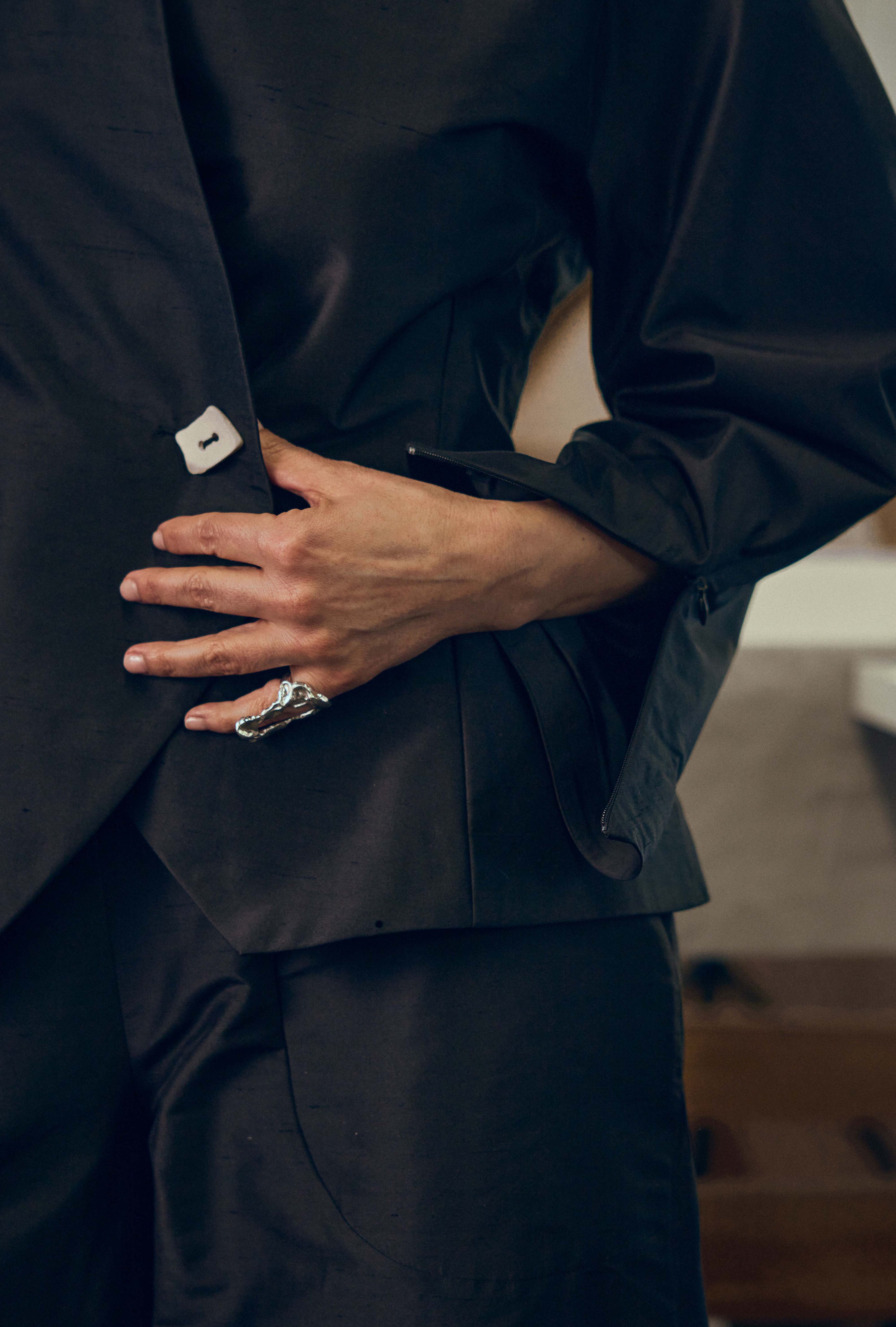 This garment is made-to-order. Pieces will ship from mid-Jan.