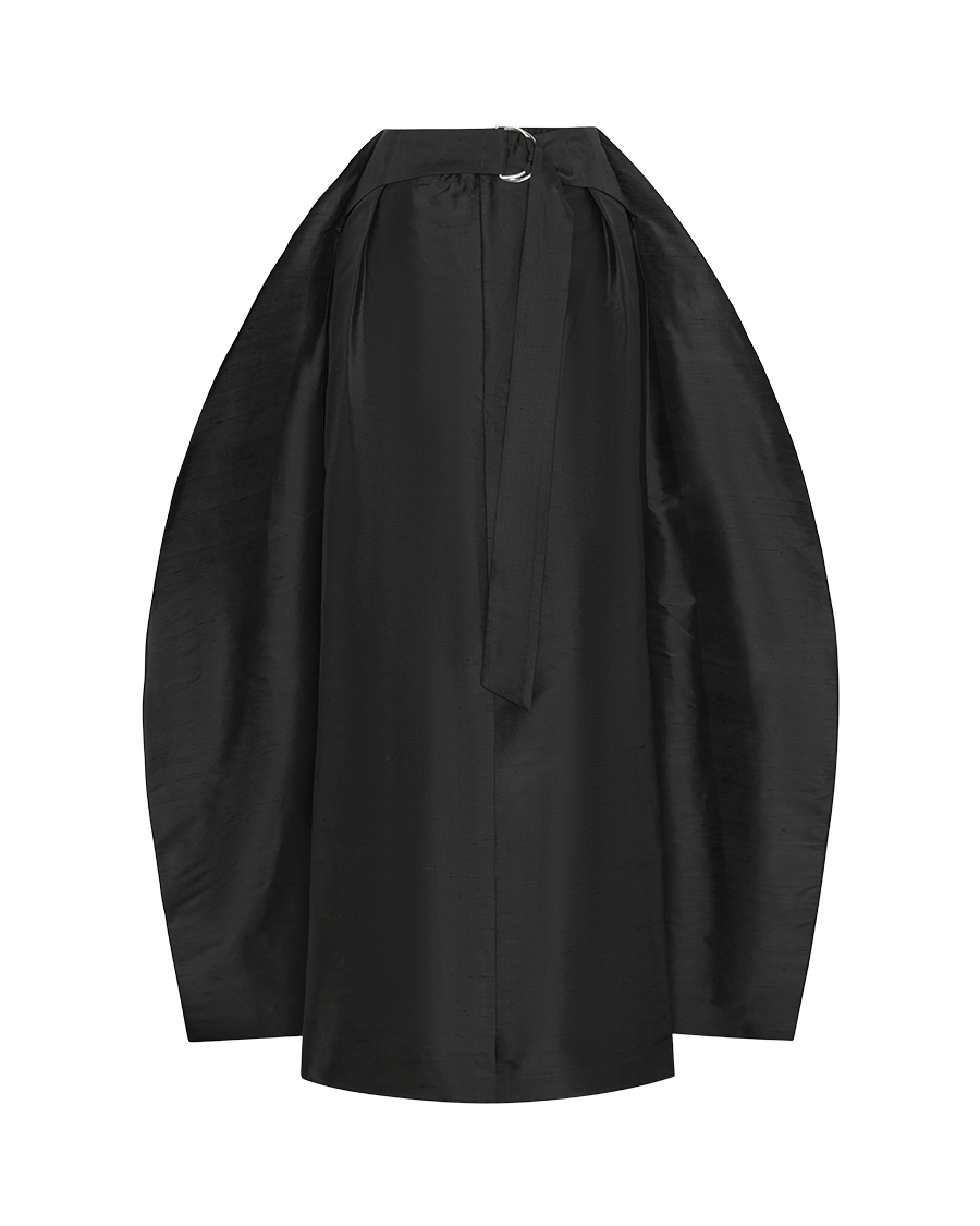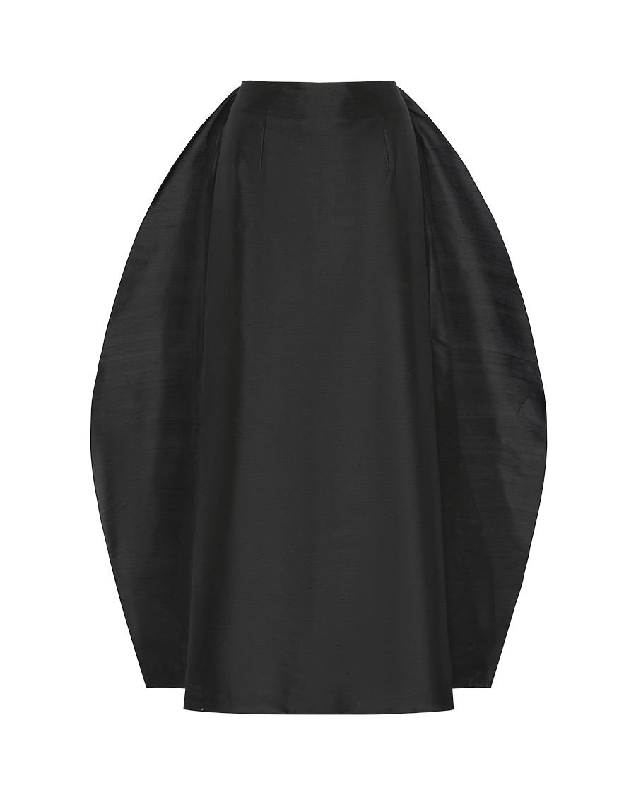 The Iris Skirt is a structured, sculptural piece with an adjustable waist and side seam splits. Made from deadstock silk dupion.
