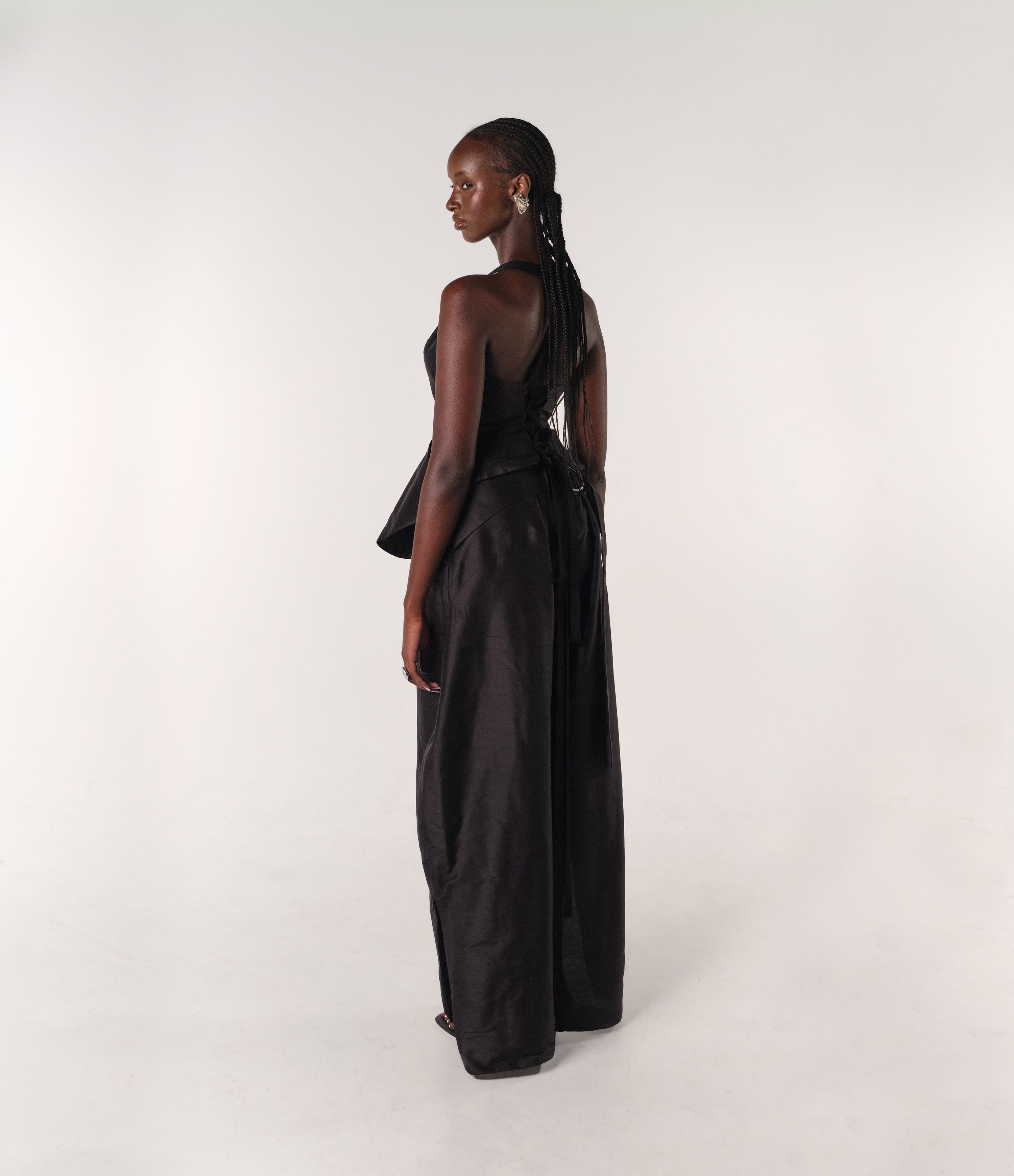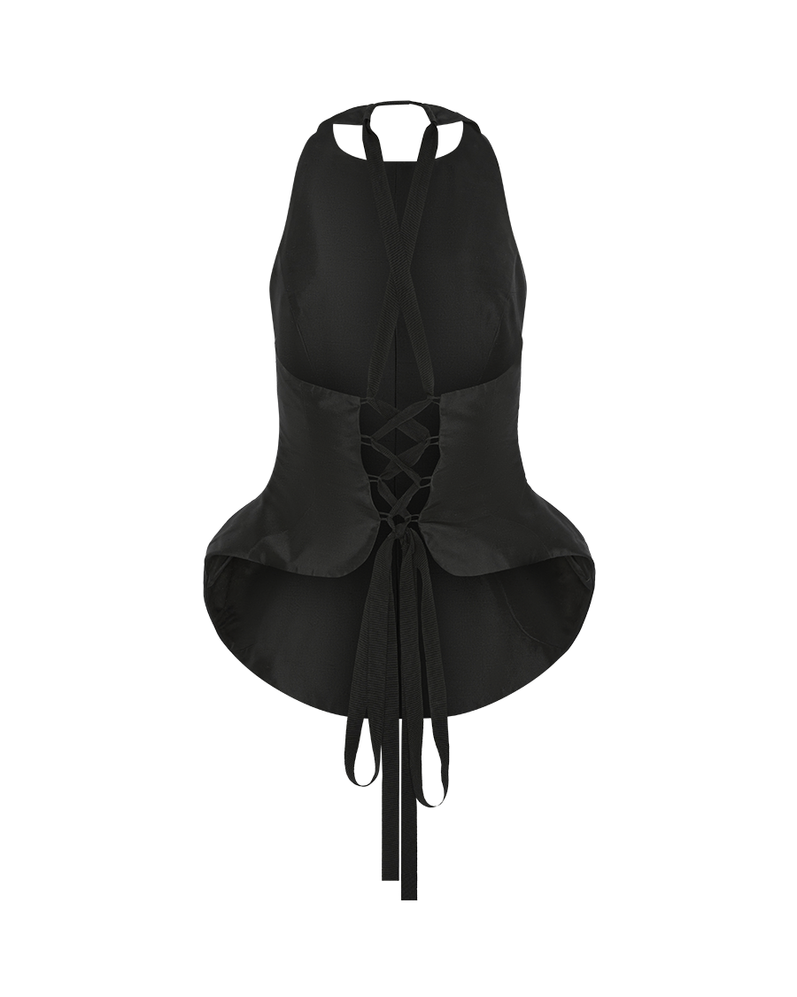 The Lilian Halter Top is crafted in deadstock silk dupion and fully lined in silk. Featuring a tie back and internal boning at the sides for support.